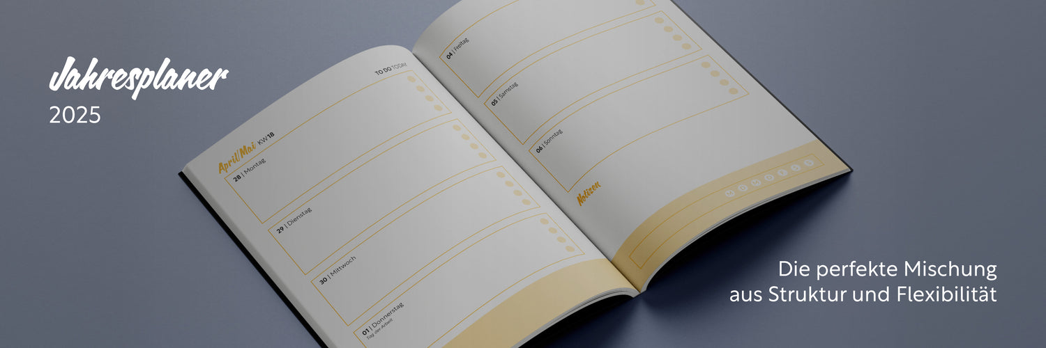 Mit diesem Jahresplaner erhälst du eine praktische Mischung aus Struktur und Flexibilität um dein Jahr 2025 erfolgreich zu meistern!